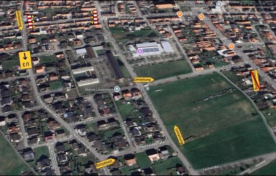 Es werden zwei Umleitungsstrecken ausgeschildert, vergleiche die nachfolgenden Bilder.