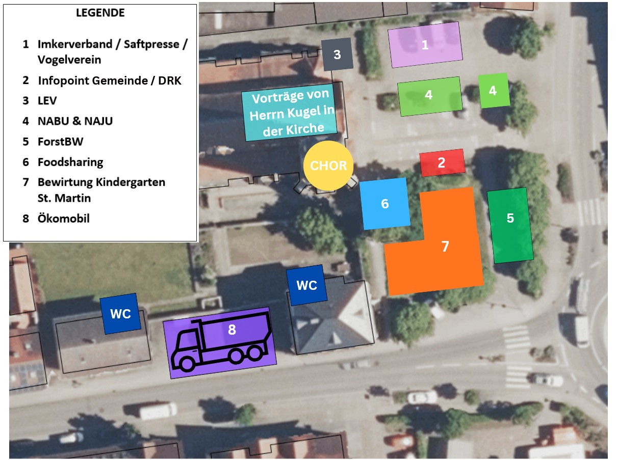 Der NABU stellt Infomaterial zu Natur-, Umwelt- und Klimaschutz aus. Außerdem bieten der NABU und die NAJU an ihrem Stand Bastelaktionen für Kinder sowie einiges zum Thema „Bienen und Insekten“ an. Zusätzlich erfolgt ein Verkauf von Bio-Obstsäften der „Streuobstinitiative im Stadt- und Landkreis KA e. V.“, zu welcher auch eine Ausstellung gezeigt wird.