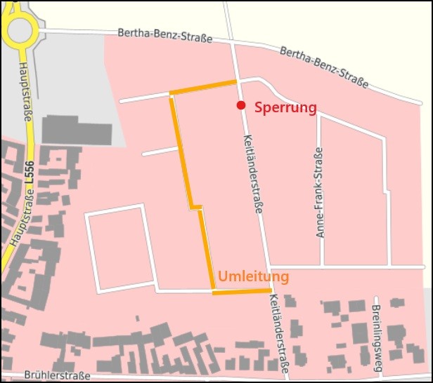 Aufgrund von privaten Hausbauarbeiten muss der oben genannte Bereich für vier Tage voll gesperrt werden.