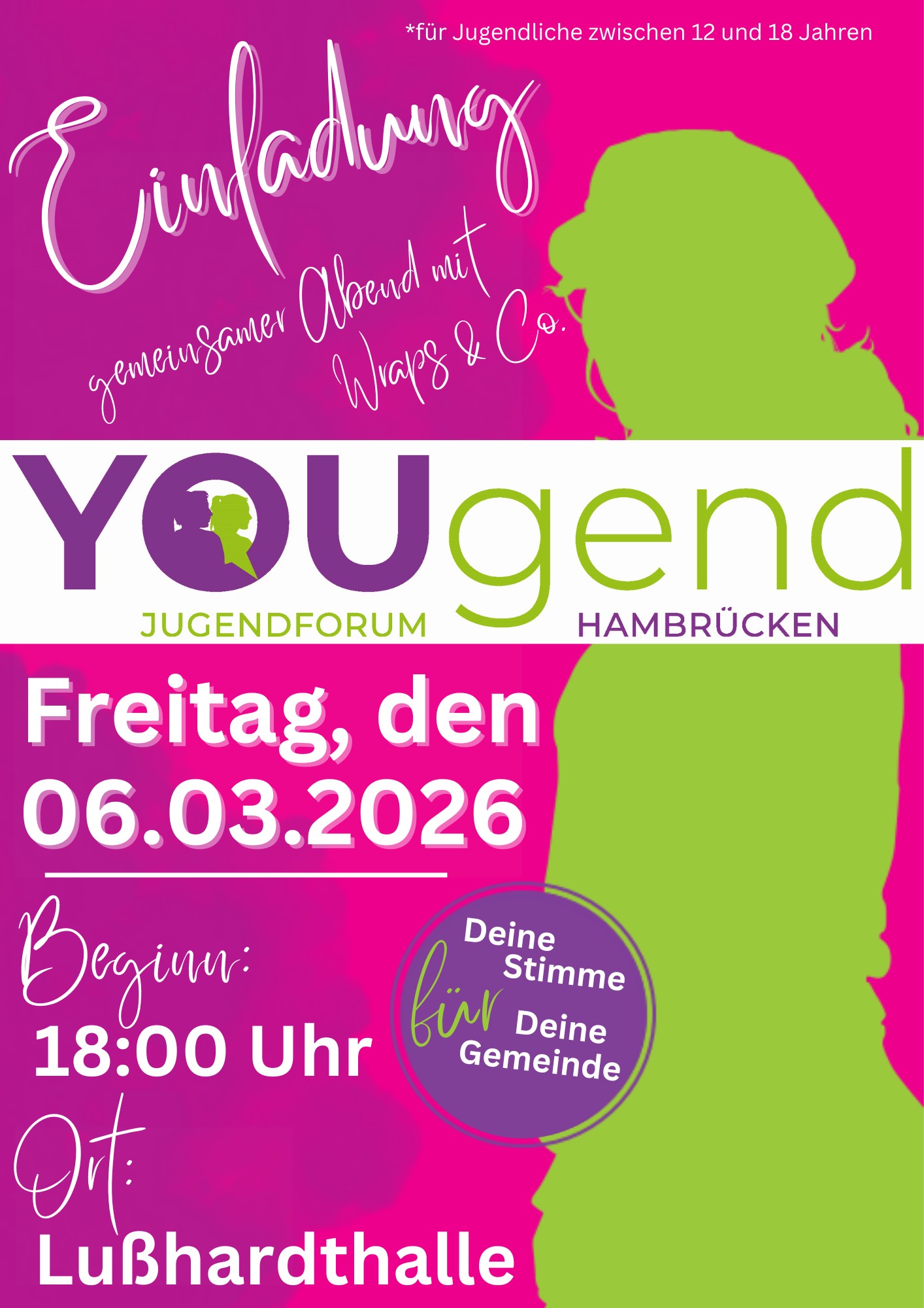 Eure Vertreter haben abgestimmt: Am Freitag, den 06.03.2026, treffen wir uns zu einem gemeinsamen Abend mit Wraps & Co. in der Lußhardthalle.