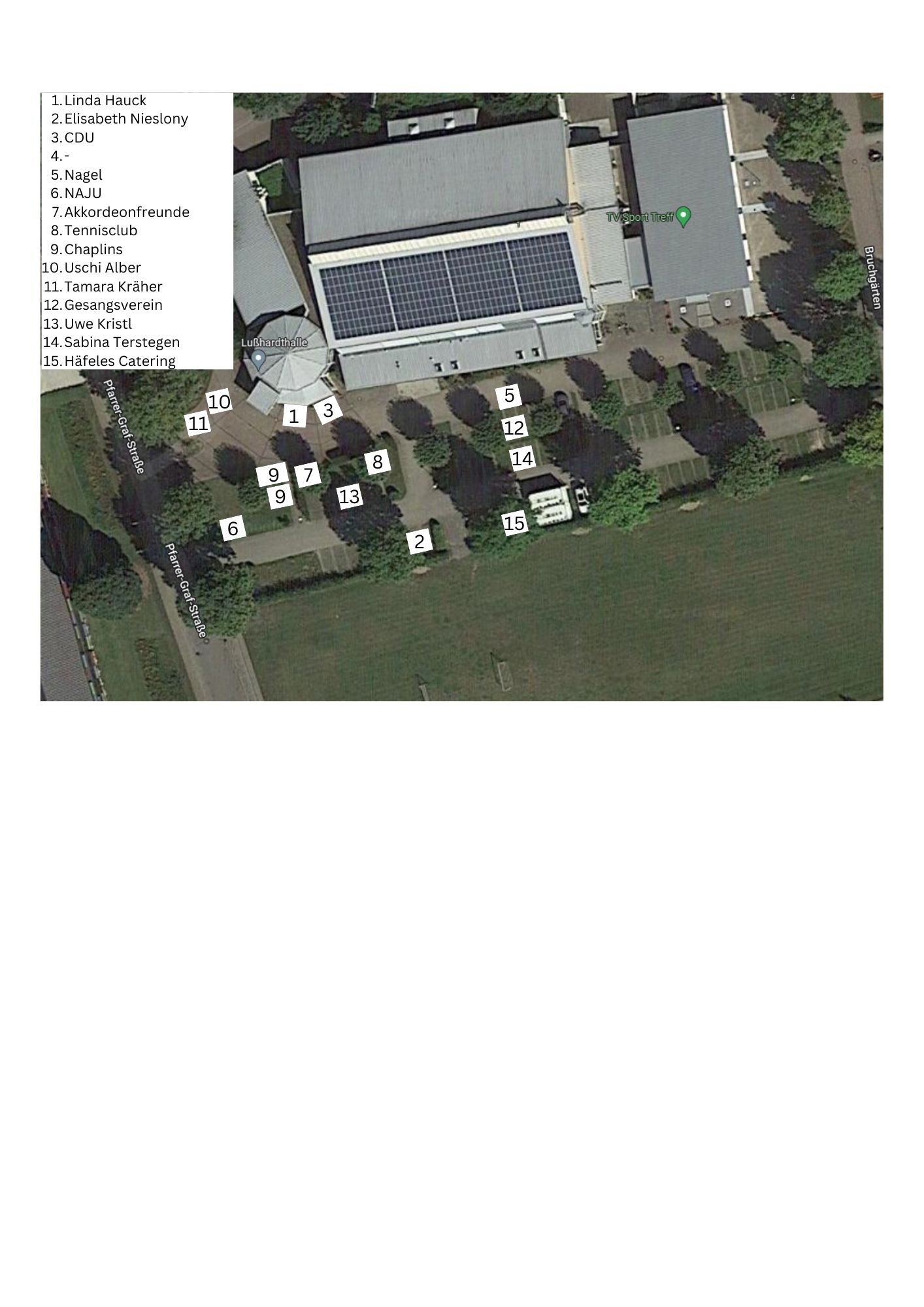 Vor der Lußhardthalle sorgen insgesamt 14 Stände unter Beteiligung einiger örtlicher Vereine für Ihr leibliches Wohl.