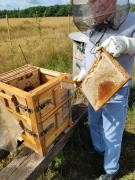 Bereits bei den ersten Stationen angekommen, gibt es neben der Holzskulptur einer Biene den Bienenstöcken oder unserer Benjeshecke noch vieles andere zu entdecken (Bild 1 und Bild 2). Besonderes Highlight für Kinder auf der gegenüberliegenden Seite unseres Pfades ist die Sandspielstation (Bild 3). Diese steht symbolisch dafür, dass unter unseren Füßen die unterschiedlichsten Tiere und Pflanzen leben und der Boden hierfür die Lebensgrundlage bildet.