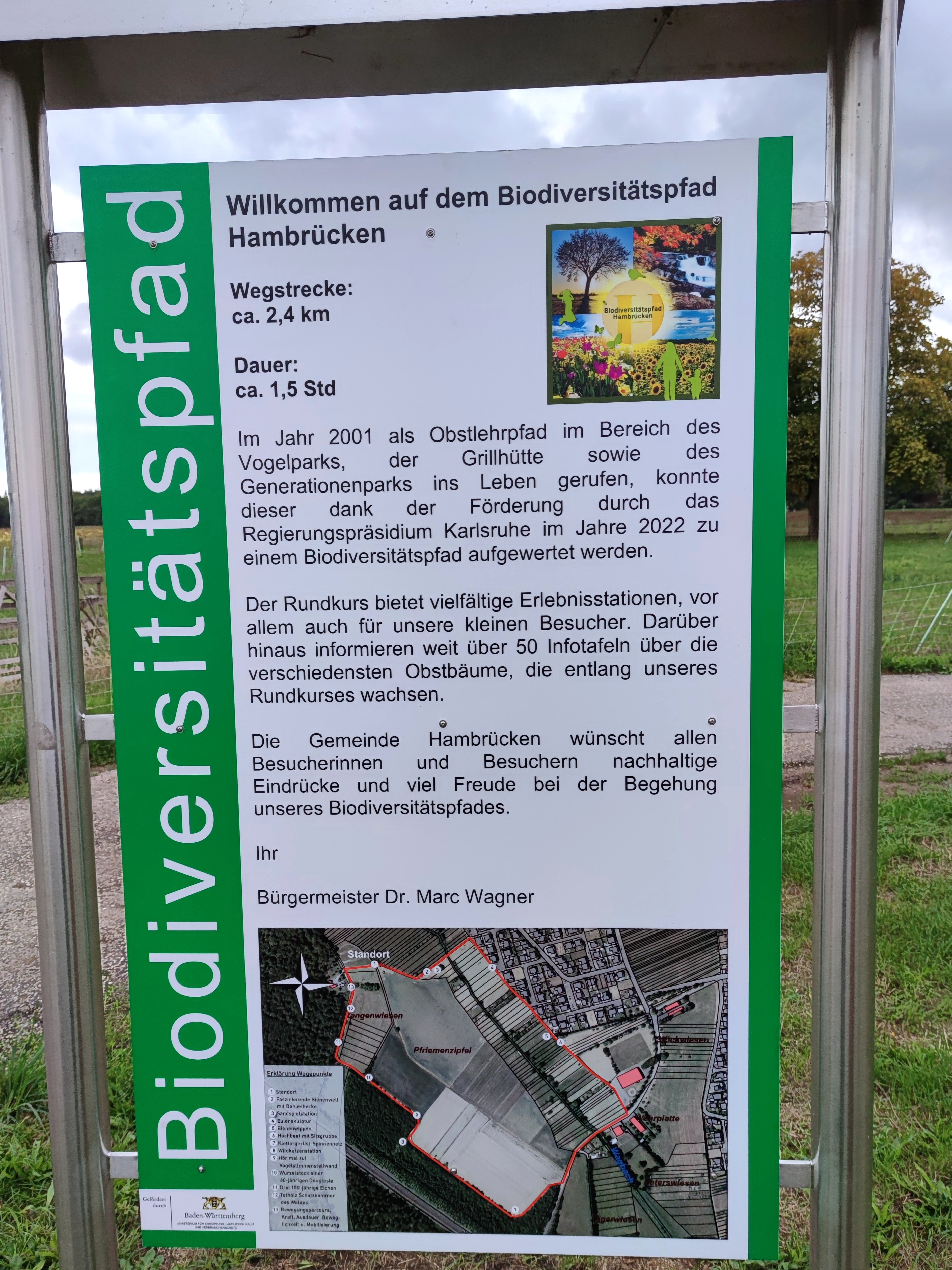 Die Gemeinde Hambrücken wünscht allen Besucherinnen und Besuchern nachhaltige Eindrücke und viel Freude bei der Begehung unseres Biodiversitätspfades.