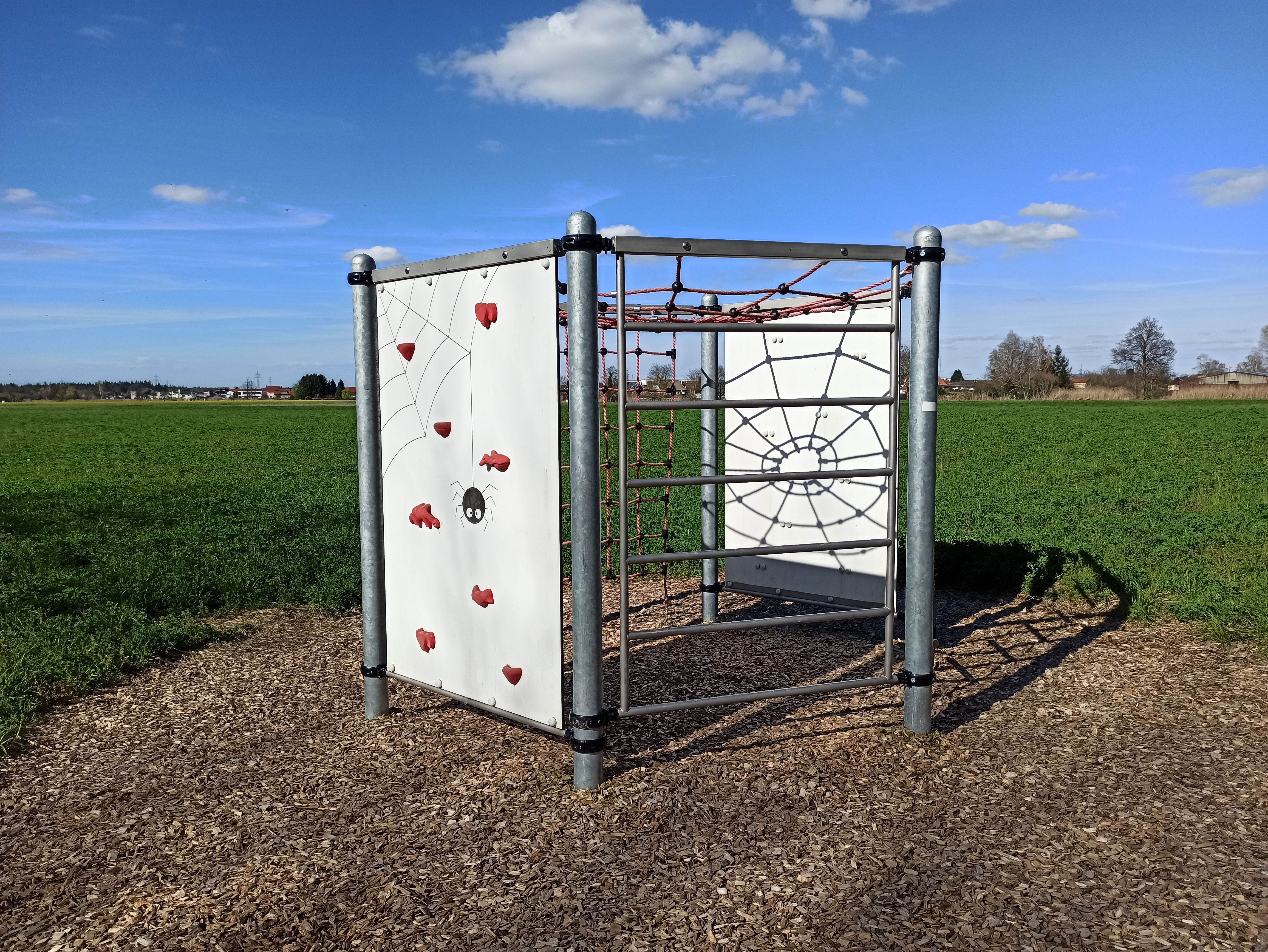 Nachdem unsere Gäste anschließend den Pfad ein längeres Stück entlanggewandert sind, wird diesen unser Klettergerüst in Spinnenoptik ins Auge fallen. Hier können Kinder ihre ersten Kletterversuche starten. (Bild 4)