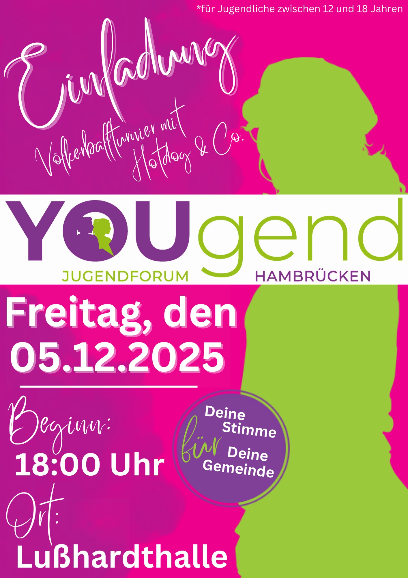 Dort erwartet euch ein gemeinsames Völkerballturnier mit Hotdog und Co. - alle, die kommen, sind automatisch beim Turnier dabei! Zuvor habt ihr die Gelegenheit, Mitglieder des Gemeinderats kennenzulernen. Der Abend klingt entspannt aus – z. B. bei einer Runde Fußball, am Fußballkicker oder einfach beim gemeinsamen Chillen.