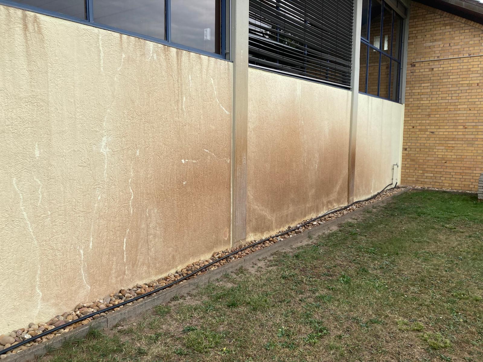 Die Fassade der Schulturnhalle bzw. der Gemeinschaftsschule im Bereich des Forums wurde im Hinblick auf dort stattfindende Trauungen vom Team des Bauhofs mit einem Hochdruckreiniger gereinigt.