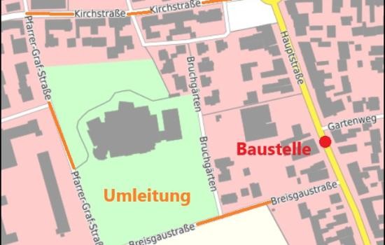 Eine Umleitungsstrecke über die Breisgaustraße, Pfarrer-Graf-Straße, Kirchstraße und umgekehrt wird ausgeschildert. Alle Geschäfte und Wohnhäuser bleiben durchgehend erreichbar.