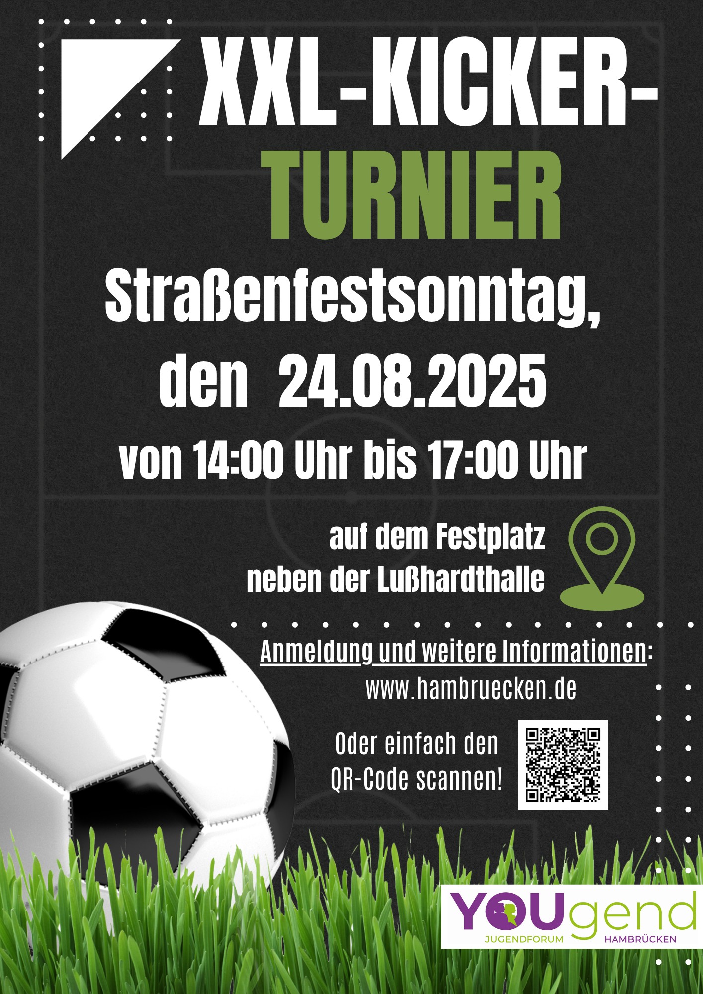 Macht mit beim ersten XXL-Kicker-Turnier, organisiert vom Team YOUgend – ein echtes Highlight am Straßenfestsonntag!