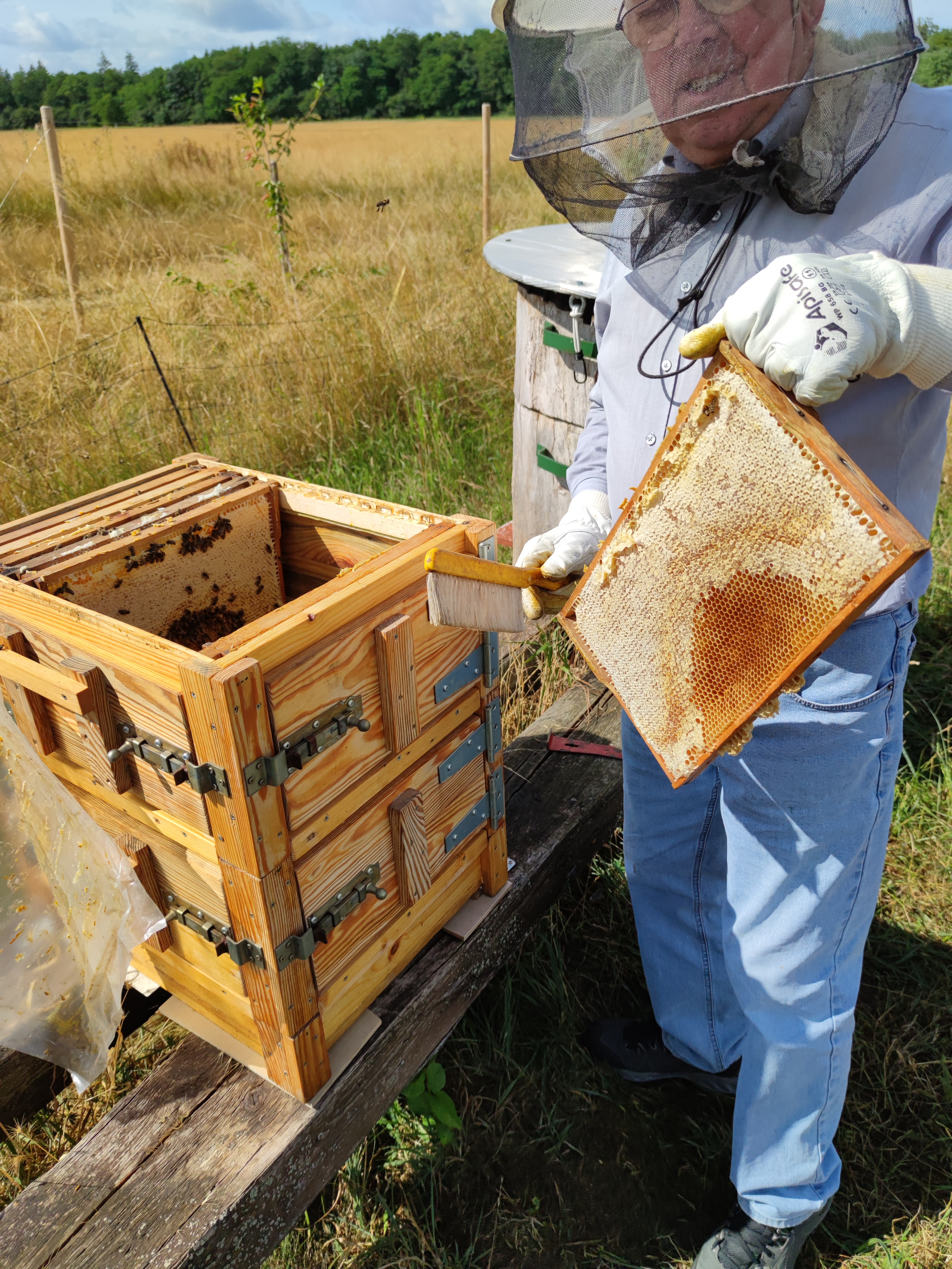 Ca. 200 Meter weiter finden sich unsere beiden Bienenwippen. Diese stehen auf einer Wiese, auf der Kinder die Natur hautnah genießen und entdecken können, während die Eltern es sich auf der gegenüberliegenden Seite des Weges auf unserer Sitzgruppe, die sich auf einer kleinen Anhöhe befindet, entspannen können. Dort wurde auch ein mit Kräutern bepflanztes Hochbeet errichtet.